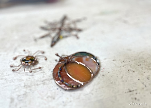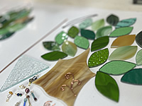生徒さま作品です^^ ガラスを割るザグザグを使用して ご自宅でコツコツと進められ 完成を見せてくれました。 可愛い明かりも灯り、素敵だったので |
