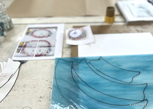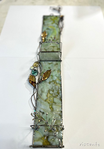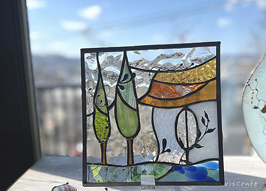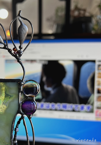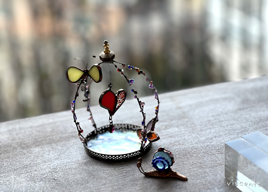 とあることで.. お邪魔したおうち。 「ステンドグラスしてるんです!」なんて 話をしていたら、 「私もガラス好きなのよ」なんて 小物が飾られてた! 「え!!! これ2つとも私が作ったものです」 「え~~~作家さんですか?」なんて 「今はもっといいものつくってます^^」なんてね 25年以上も前に制作したコに出会えました。 『visconte』てサインも入ってる^^