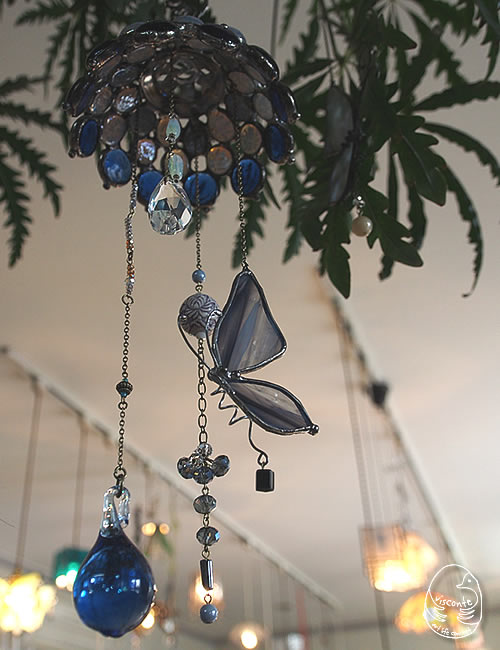 ガラス玉の傘の下に、蝶やしずく達が揺らめきます。