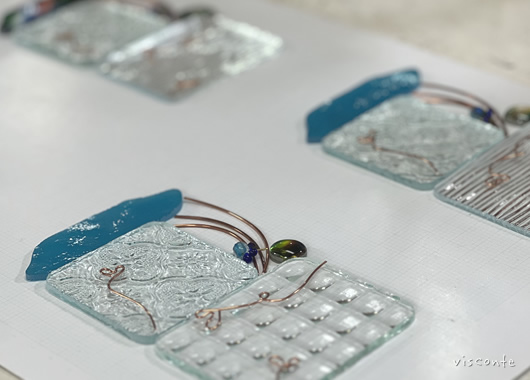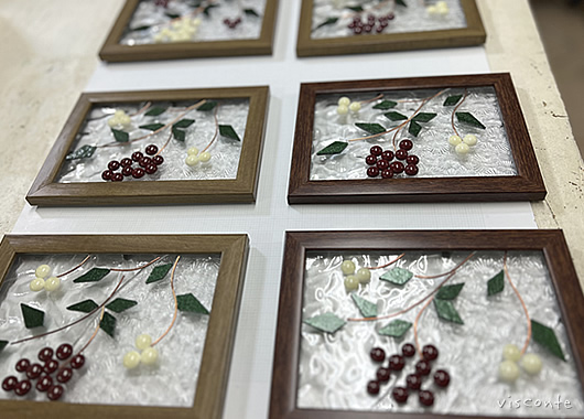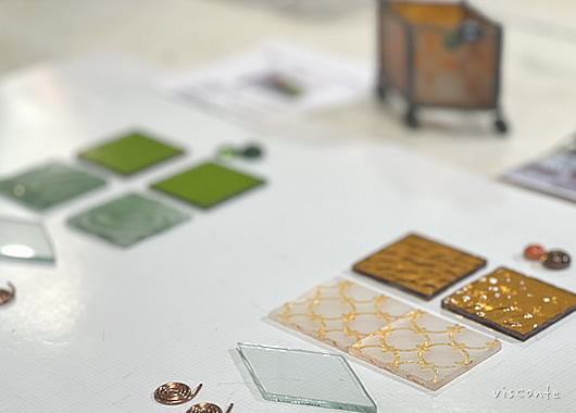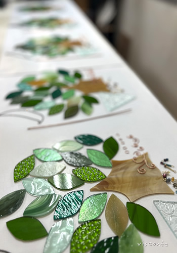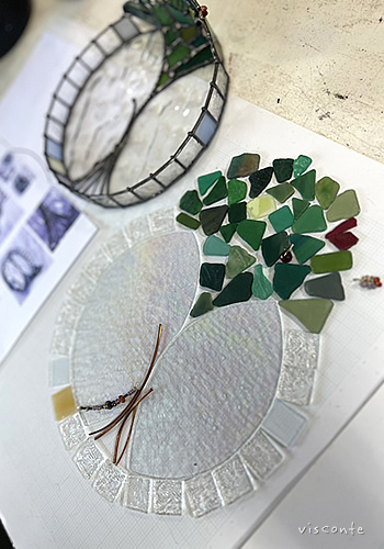生徒さま作品です^^ ガラスを割るザグザグを使用して ご自宅でコツコツと進められ 完成を見せてくれました。 可愛い明かりも灯り、素敵だったので |