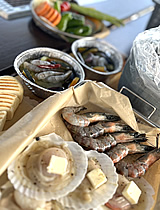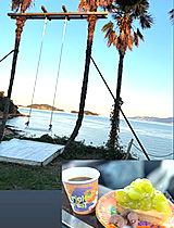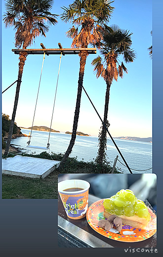 牛窓町の『TARI』海鮮バーベキューを豪快にジュージュー 美食に囲まれお腹いっぱい♪部屋のベッドでのんびりくつろぎ 道中で買ったケーキを冷蔵庫からだして美味しくコーヒーと共に...