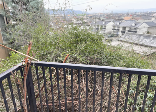 ベランダにも絡みついて その感じも良かったのですが.. ベランダがひきちぎれそうにまで^^; 剪定というよりバッサリ! 部屋が明るくなったよ♪またすぐ伸びるよね♪ |