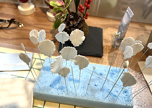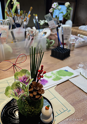 粘土教室へ行ってきました 「菜彩」さんのところの蔵2Fへ、 粘土で葉牡丹つくり! 先生のお手を借り可愛いお正月飾りがひとつ できあがりました~ おもしろい。